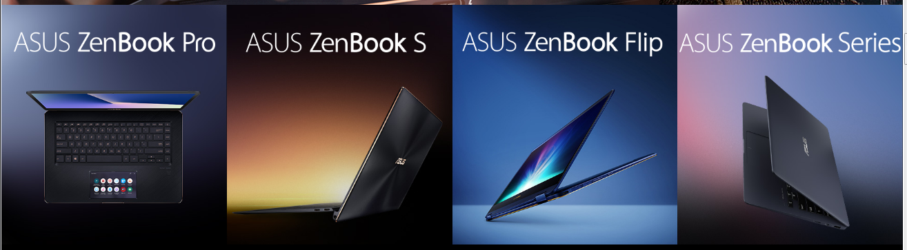 ASUS memanjakan konsumen dengan mobilitas tinggi yang mendukung efisiensi dengan laptop tipe Zenbook yang tipis dan paling ringkas di kelasnya. Ada beragam pilihan layar tergantung kebutuhan dan selera dari 13, 14 dan 15 inci. Tipis tidak berarti lambat, justru kecil tapi gesit. Secara operasional dilengkapi dan diperkuat dengan prosesor terbaru intel Core generasi ke-8, baik Core i5 maupun Core i7. ZenBook Series mempunyai slogan Less in the New Luxury: The World’s Thinnest Convertible Laptop. Ada beragam keunggulan dari seri ini yaitu: Desain ultra tipis dan ringan, Umur baterai 3x lebih lama, Pemindai sidik Jari tanpa password, Teknologi Layar IPS, USB 3.1 Type C, Ultra Ringan dan Sonic Master Premium. SonicMaster Premium Technology memanjakan telinga saat menonton film atau mengerjakan tugas sambil mendengarkan musik. Ada 4 speaker dengan kualitas tinggi dengan tenaga dua amplifier pintar. Hasilnya suara yang dihasilkan 2,5 kali lebih kencang dengan hasil suara premium. Volume suara maksimal tanpa distorsi untuk suara yang jernih dan kuat.